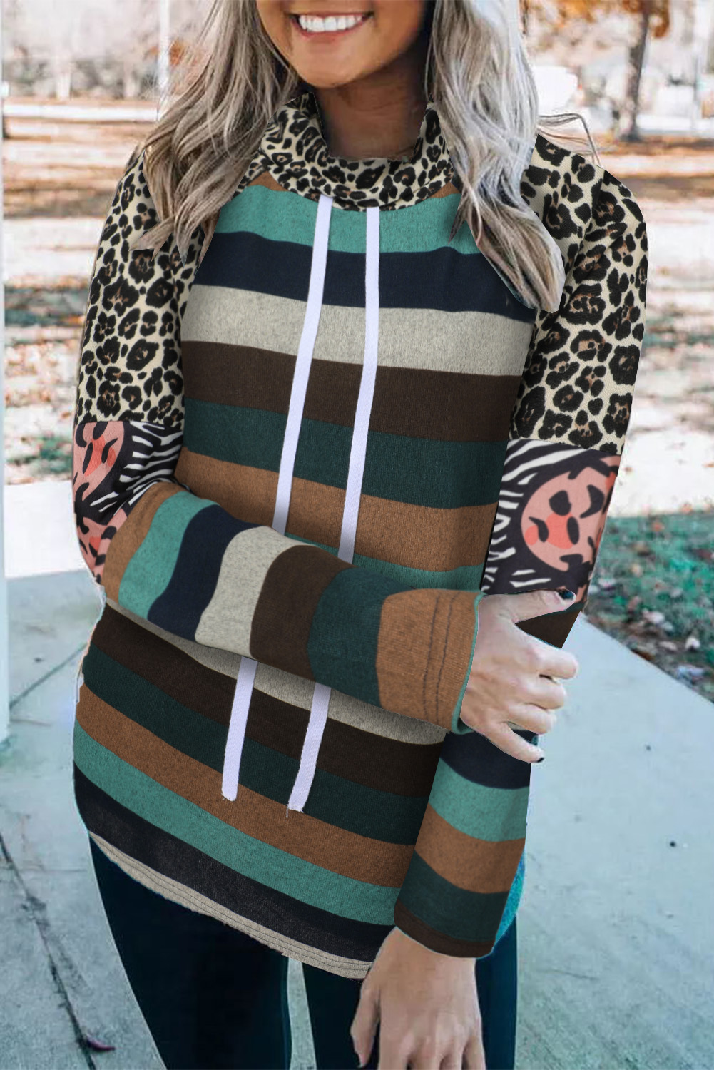Drop-Shoulder Sleeve Striped Patchwork Pullover Sweater