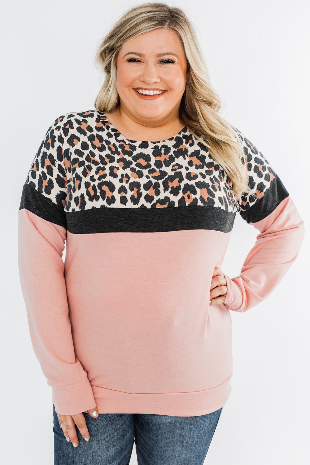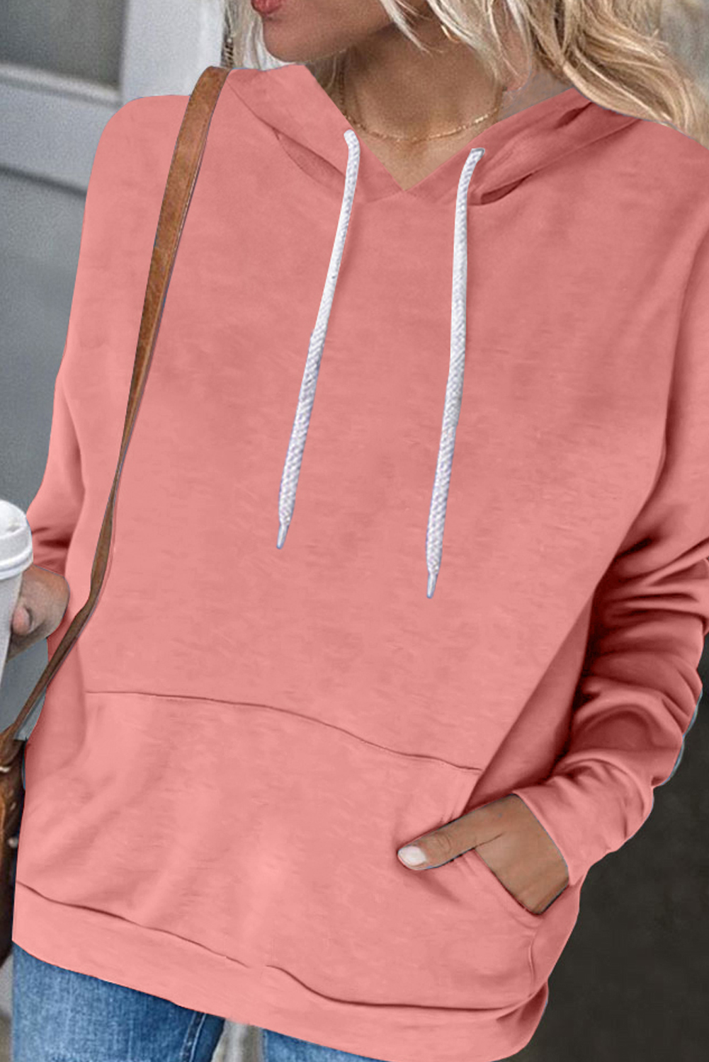 Pink Drawstring Long Sleeve Hoodie with Kangaroo Pocket