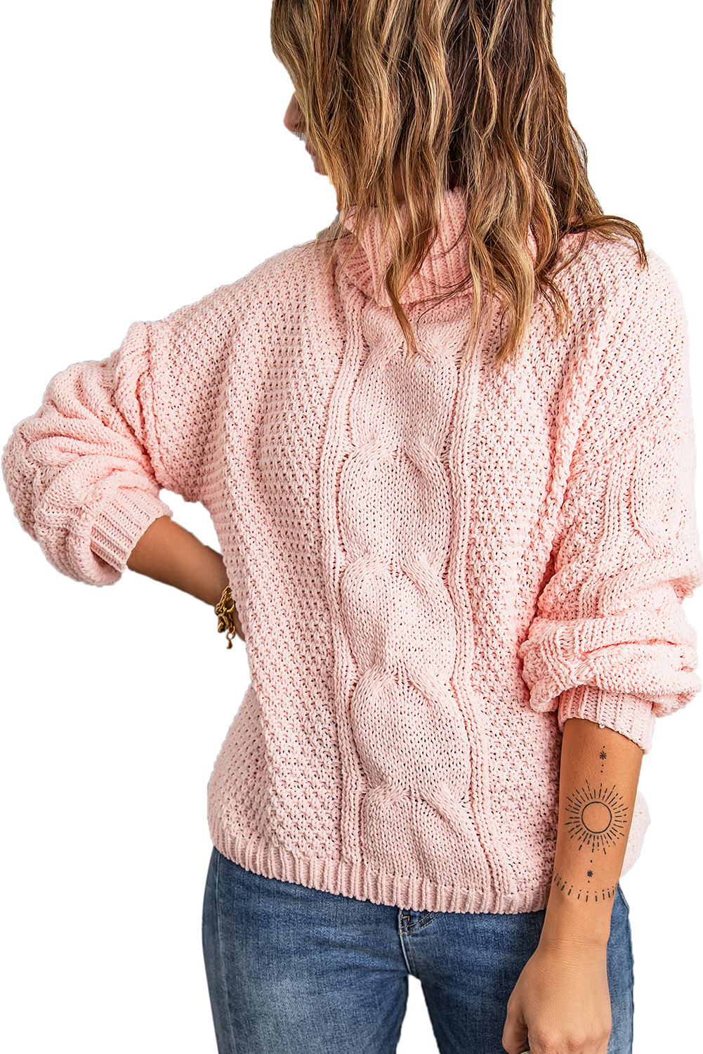 Gray Solid Turtleneck Cable Knit Pullover Sweater